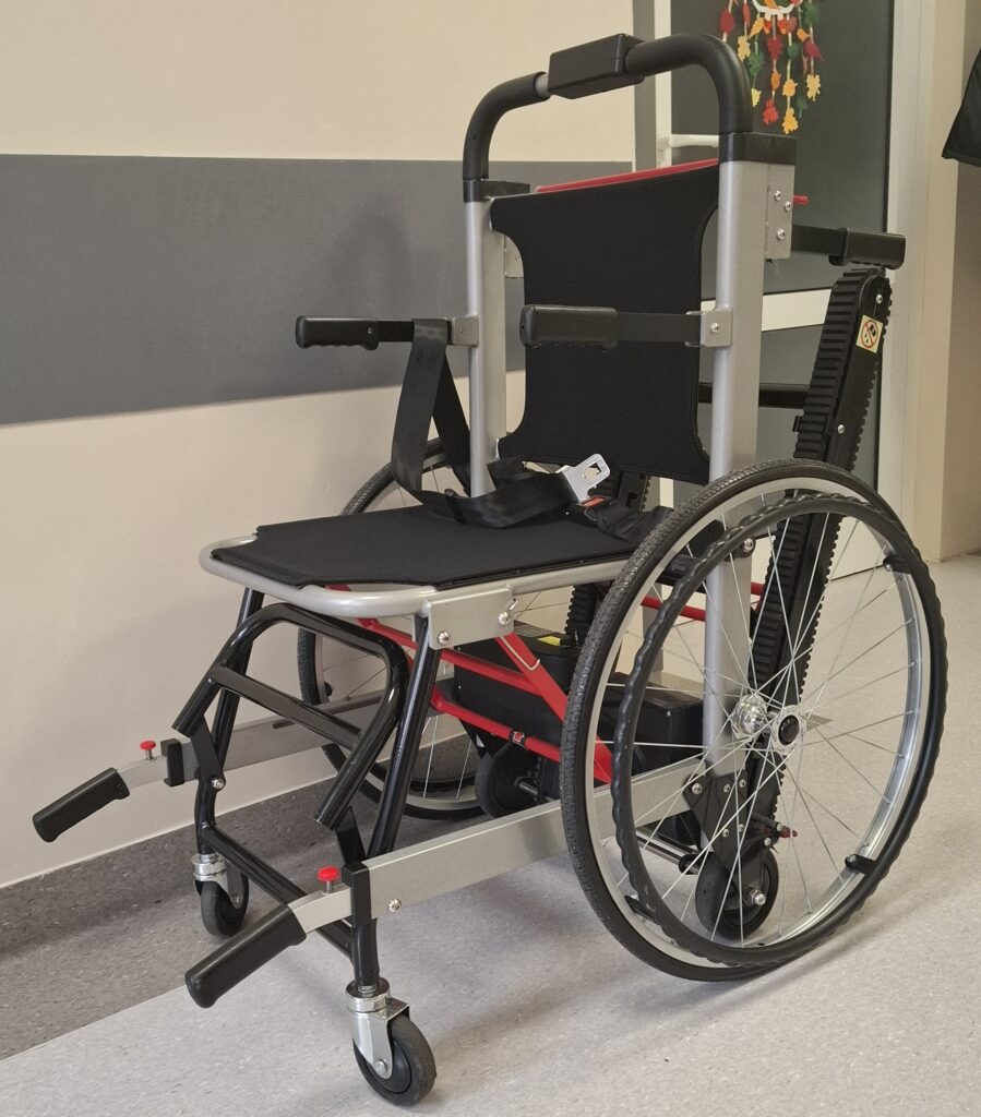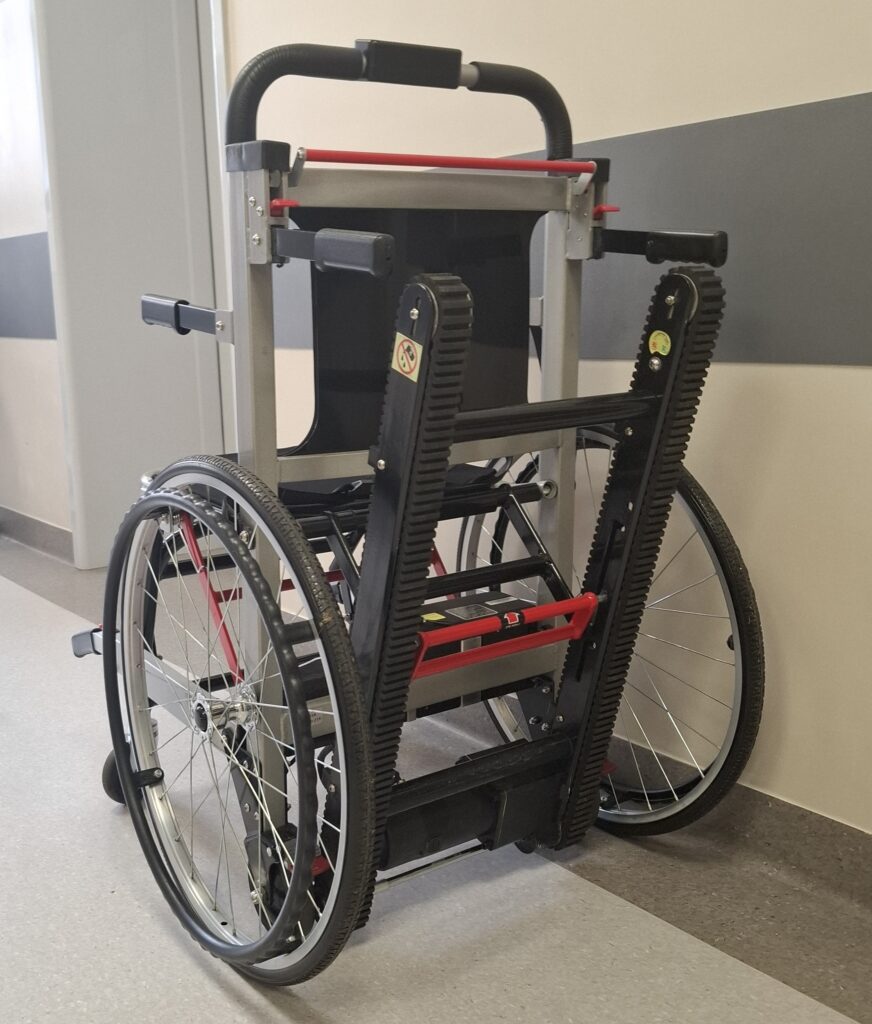 Dysponujemy nowym profesjonalnym sprzętem: wózki schodowe, shodołazy, krzesełka które potrafią przetransportować osobę o maksymalnej wadze 200 kg po schodach klatki schodowej i nie tylko.